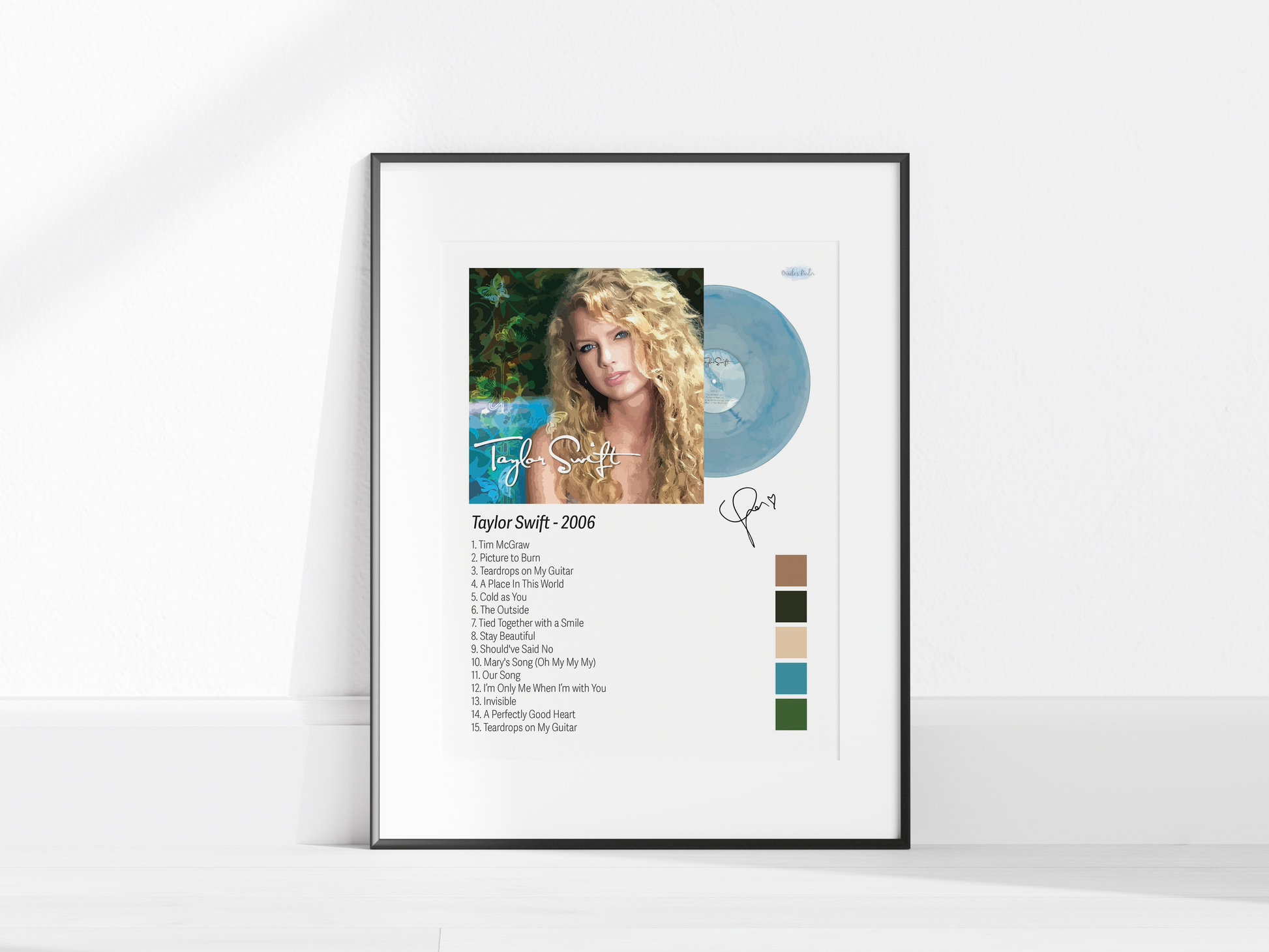 Step back into the dreamy debut era with this illustrated album poster — complete with the classic cover, soft blue vinyl, full tracklist, and a cozy color palette. It’s the perfect little nostalgia piece for any Swiftie wall.